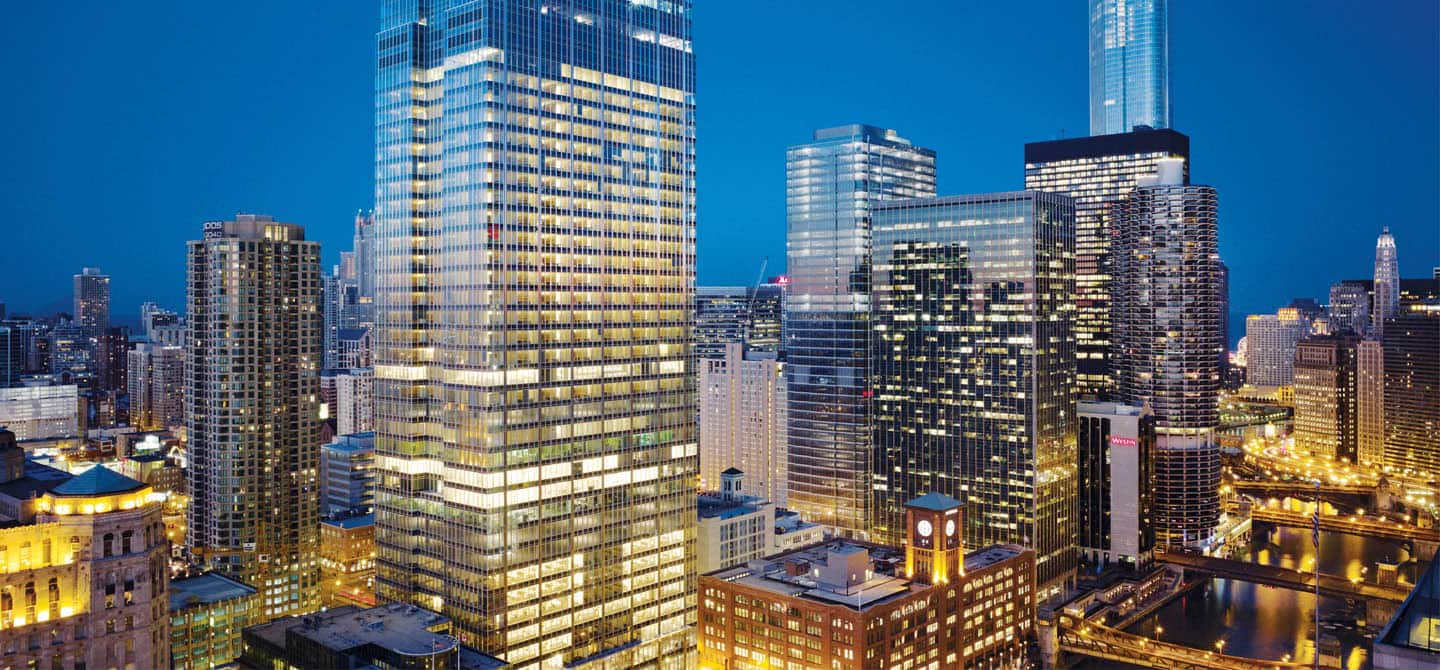 Located near the historic commercial center in Chicago, Illinois, the high-rise at 300 North LaSalle is a showpiece of urban architecture, state-of-the-art technology and eco-efficiency.